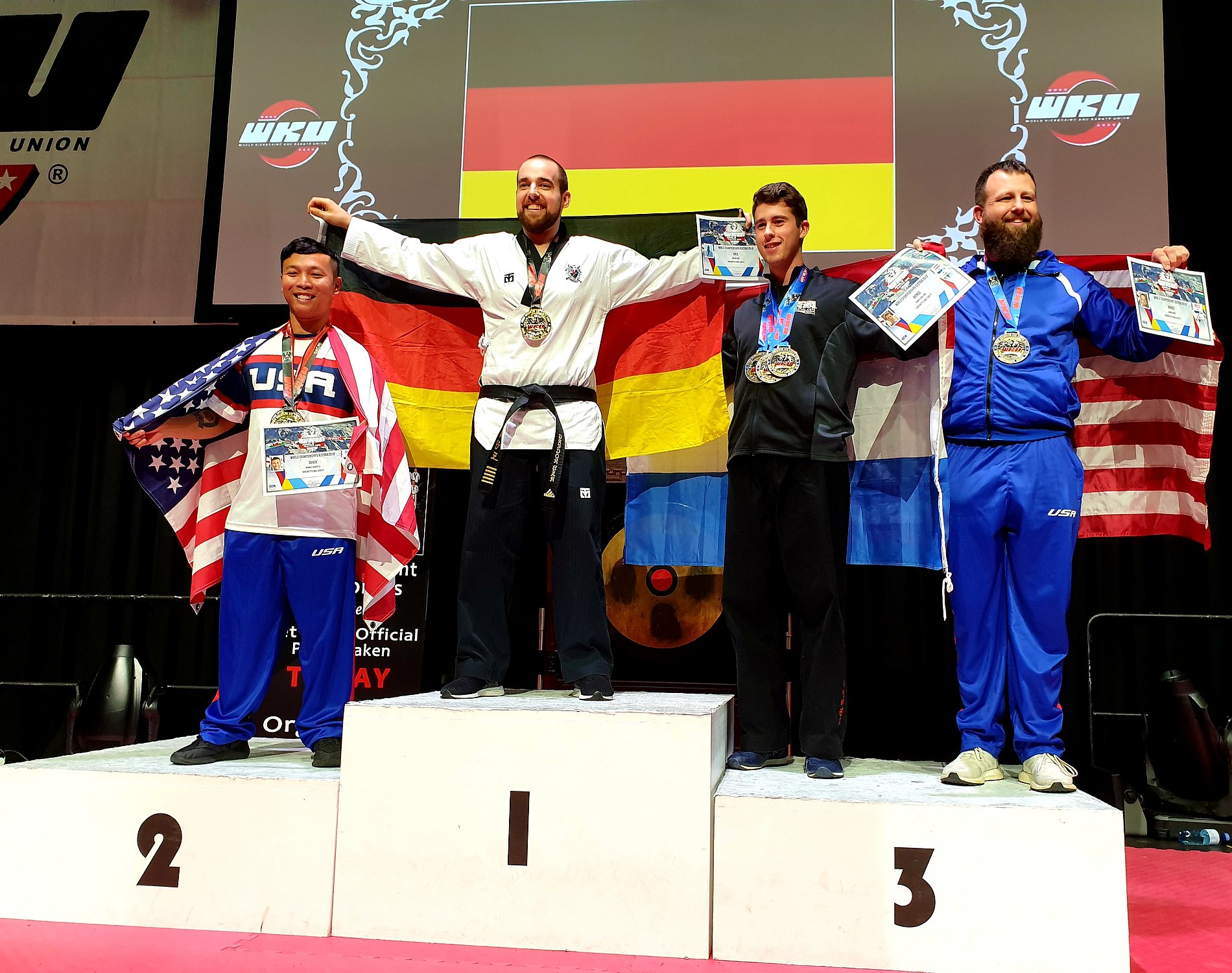 Bei dem mit 1980 Startern aus über 40 Nationen stark besetztem Kampfsportturnier sicherte sich Bär den begehrten Titel in der Klasse Kata „Korean Style Herren 18-34 Jahre“ vor den Sportlern aus der USA und den Niederlanden.