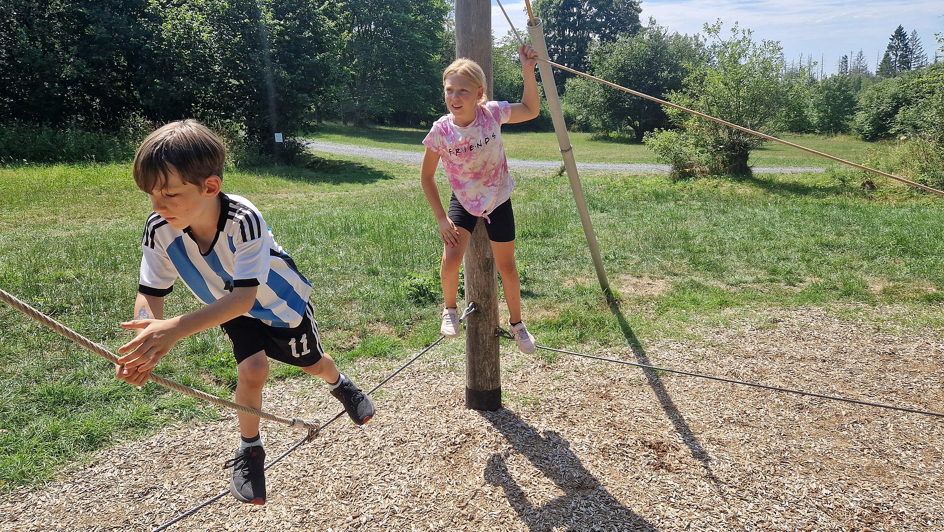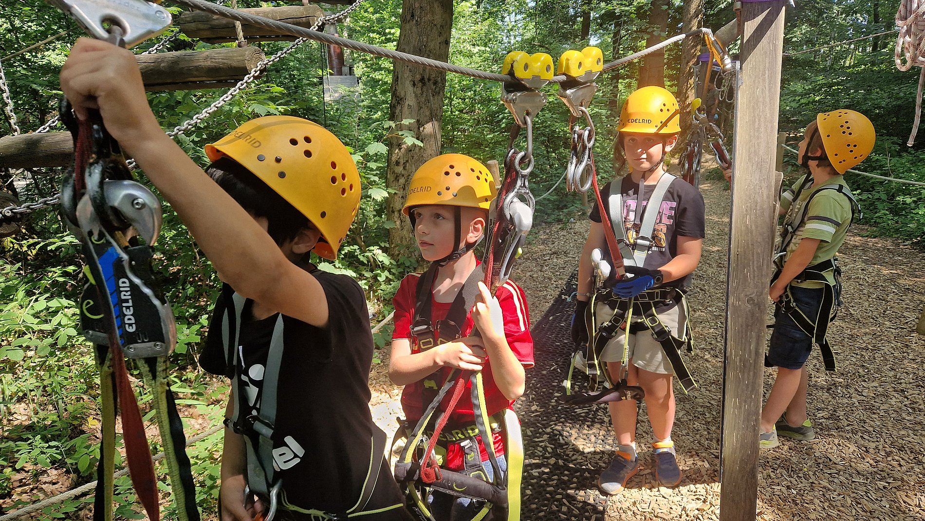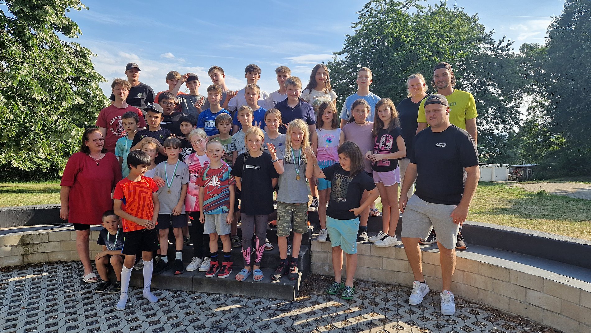 Die 29 Kinder und Jugendlichen aus Wiesbaden, Zeisheim und Kronberg hatten ihren Spaß bei Sportspielen und kleinen Gruppenwettkämpfen, Klettern, Bauen, Wasserspielen und am Ende der Kletterpark in Bad Marienberg.